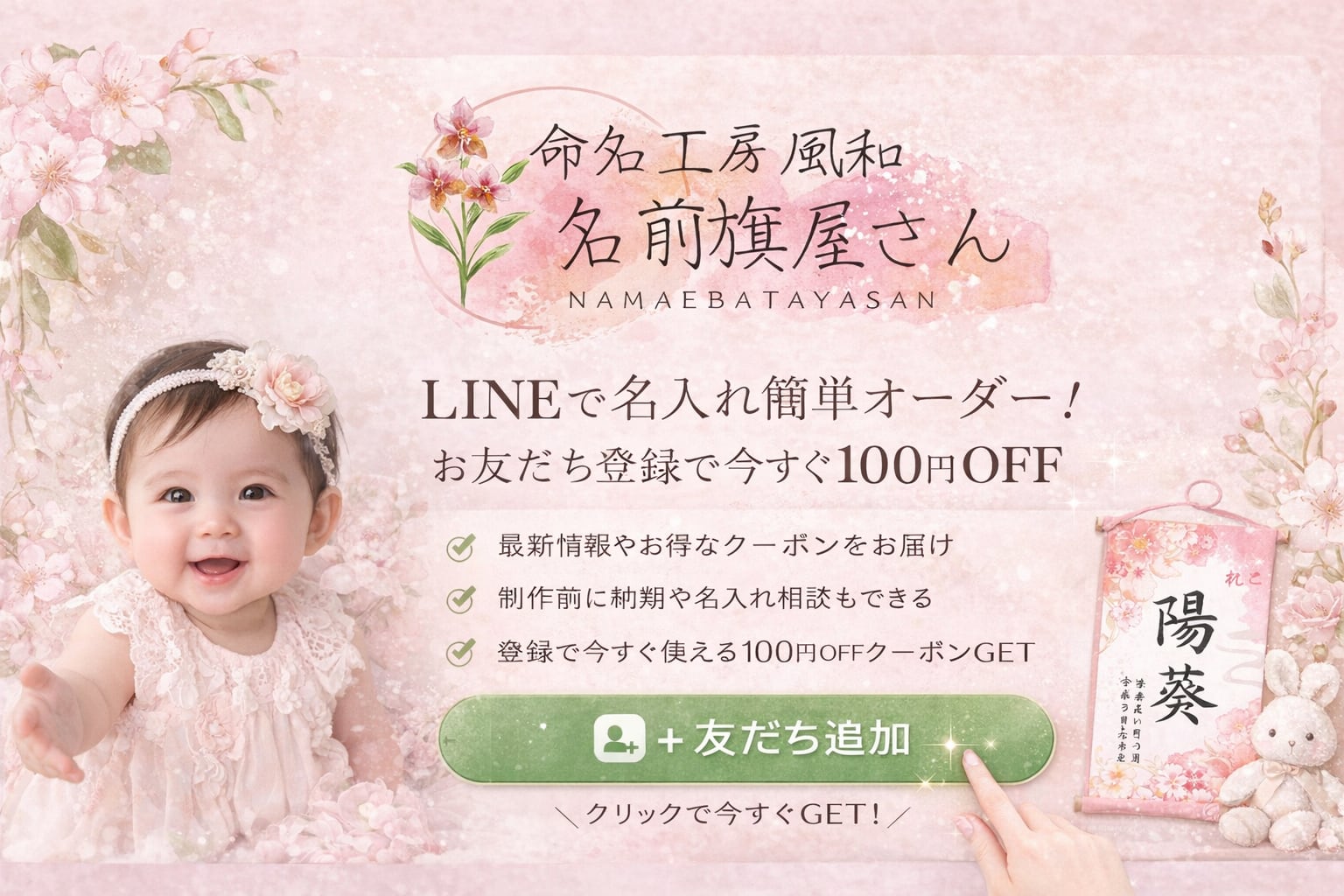名前旗風タペストリー 鞠と牡丹~桃色~